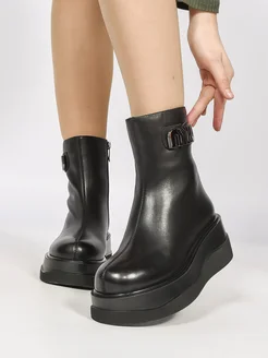 Ботинки женские демисезонные на танкетке натуральная кожа