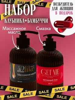 Набор масло для массажа с афродизиаками, смазка 18+ клубника