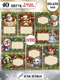 Новогодние наклейки на подарки "Мультяшки" 40 шт