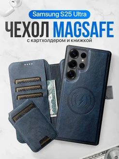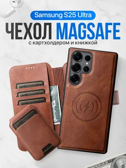 Кожаный чехол-книжка с картхолдером для Samsung S25 Ultra