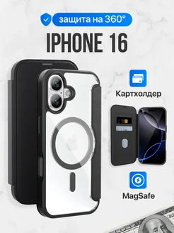 Кожаный чехол-книжка с картхолдером для iPhone 16 Pro Max