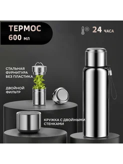 Термос стальной 0,6 л, с ситечками, сталь SUS 316