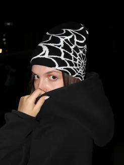 Y2K Шапка зимняя бини вязаная тонкая паутина