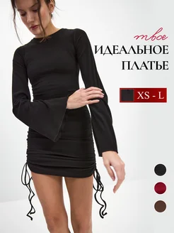 Платье лапша нарядное Y2K короткое с завязками и драпировкой