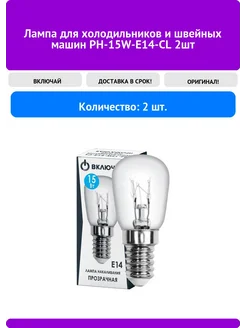 Лампа для холодильников и швейных машин РН-15W-E14-CL 2шт