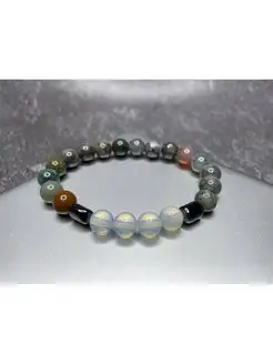 Браслет с Дзи 9 глаз из камней тигровый глаз шунгит
