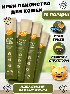 Крем лакомство для кошек с уткой и тунцом Кацуо 10 шт