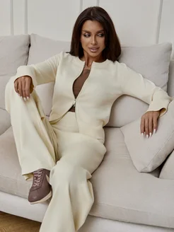 Костюм трикотажный с брюками двойка на молнии вязаный зимний
