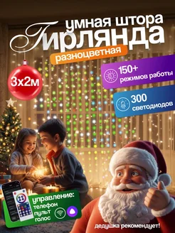 Умная гирлянда штора на окно с Алисой 3 на 2