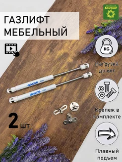 Газлифт мебельный на 6 кг доводчик 60N белый, 2шт