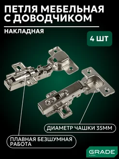 Петля мебельная с доводчиком для кухни в шкаф 4 штуки