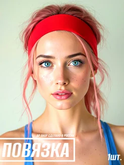 Повязка на голову красная спортивная косметическая
