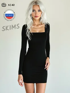 Платье короткое облегающее трикотажное вечернее черное мини