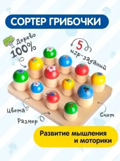 Набор Грибочки, Деревянный сортер, Счет, цвета, формы, игра