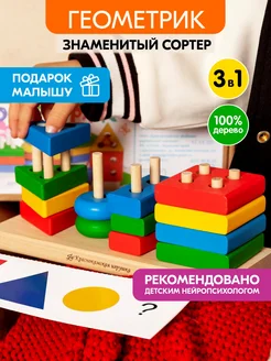 Деревянный сортер для малышей Геометрик, игрушка-шнуровка