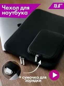 Чехол для ноутбука 15.6 дюймов черный + чехол для зарядки
