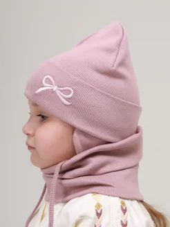 Шапка с завязками и снуд для девочки комплект осень весна