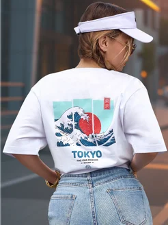 Футболка оверсайз с принтом базовая, однотонная