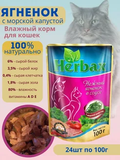 Корм для кошек влажный ягненок в соусе 24 шт по 100 гр