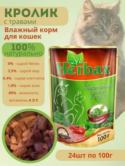 Корм для кошек влажный кролик соус с травами 24 шт по 100 г