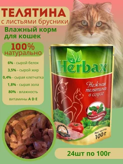 Корм для кошек влажный телятина в соусе 24 шт по 100 г
