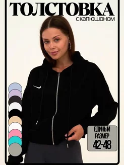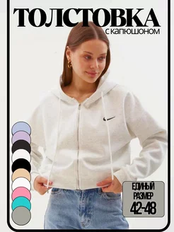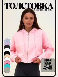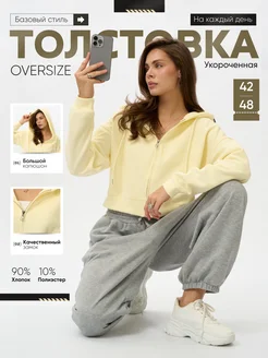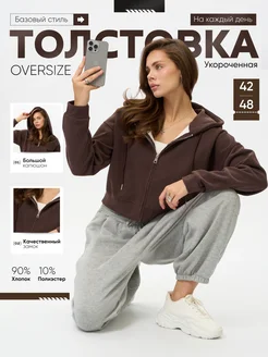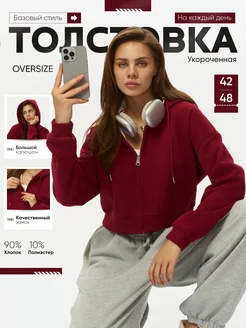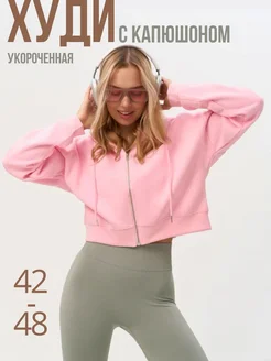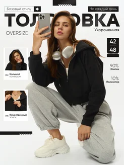 Толстовка укороченная с капюшоном зипка на молнии оверсайз