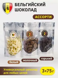 Шоколад белый, молочный, горький бельгийский в пакетах 225г