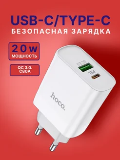 Быстрая зарядка для iPhone Hoco C80A Plus 20W TYPE-C + USB-A