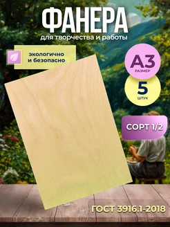 Фанера А3, для выжигания, трудов, лазера, творчества 5шт