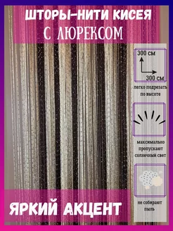 Нитяные шторы кисея, тюль спиральки макарони с люрексом