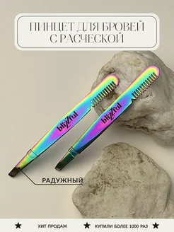 Пинцет для бровей с расческой радужный (ручная заточка)