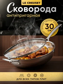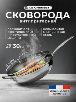 Глубокая сковорода ВОК с крышкой из нержавеющей стали