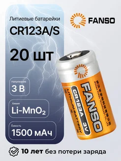 CR123A S Литиевая батарейка, Li-MnO2 (20 шт)