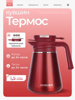 Термос кувшин из нержавеющей стали 1,5 л красный