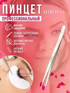 Пинцет для наращивания ресниц Ветус TS-11 прямой