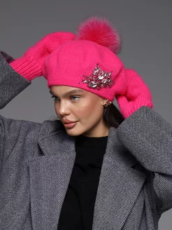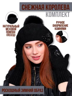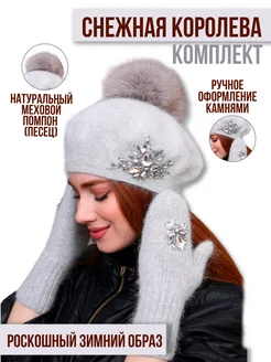 Ушанка женская шапка ангора теплая вязаная зимняя