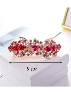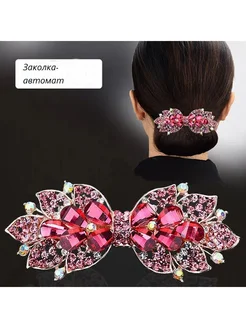 Красивая заколка автомат для волос со стразами и камнями