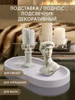 Подставка для свечей, поднос подсвечник новогодний из гипса