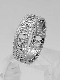 Кольцо серебряное 925 с камнями "Спаси и сохрани" широкое
