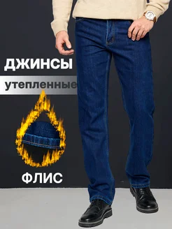 Джинсы мужские утепленные с начесом на флисе зимние прямые
