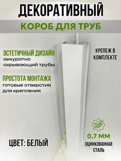 Декоративный короб для труб Г-образный,белый 1200х118х85 мм