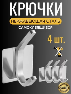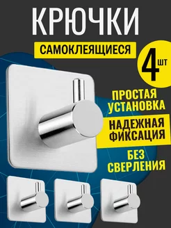 Крючки самоклеящиеся для ванной полотенец настенные 4 штуки