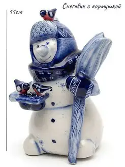 Скульптура"Снеговик с кормушкой"высота11см,авт.Л.иВ.Черновы