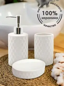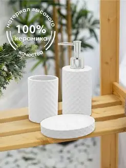 Набор для ванной комнаты 3 предмета Дозатор Стакан Мыльница