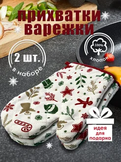 Прихватка рукавица 2шт, новогодний набор для кухни