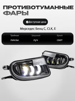 Диодные ПТФ 50W 6000К 3 линзы для Мерседес Бенц C, CLK, E