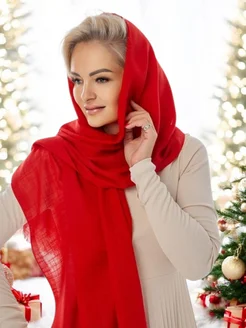 Шарф палантин Лен Красный легкий
