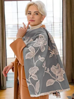 Платок теплый на голову и плечи осенний Кашемир