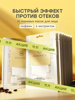 Тканевые маски для лица противоотечные, набор 10 шт