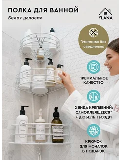 Угловая полка для ванной комнаты белая